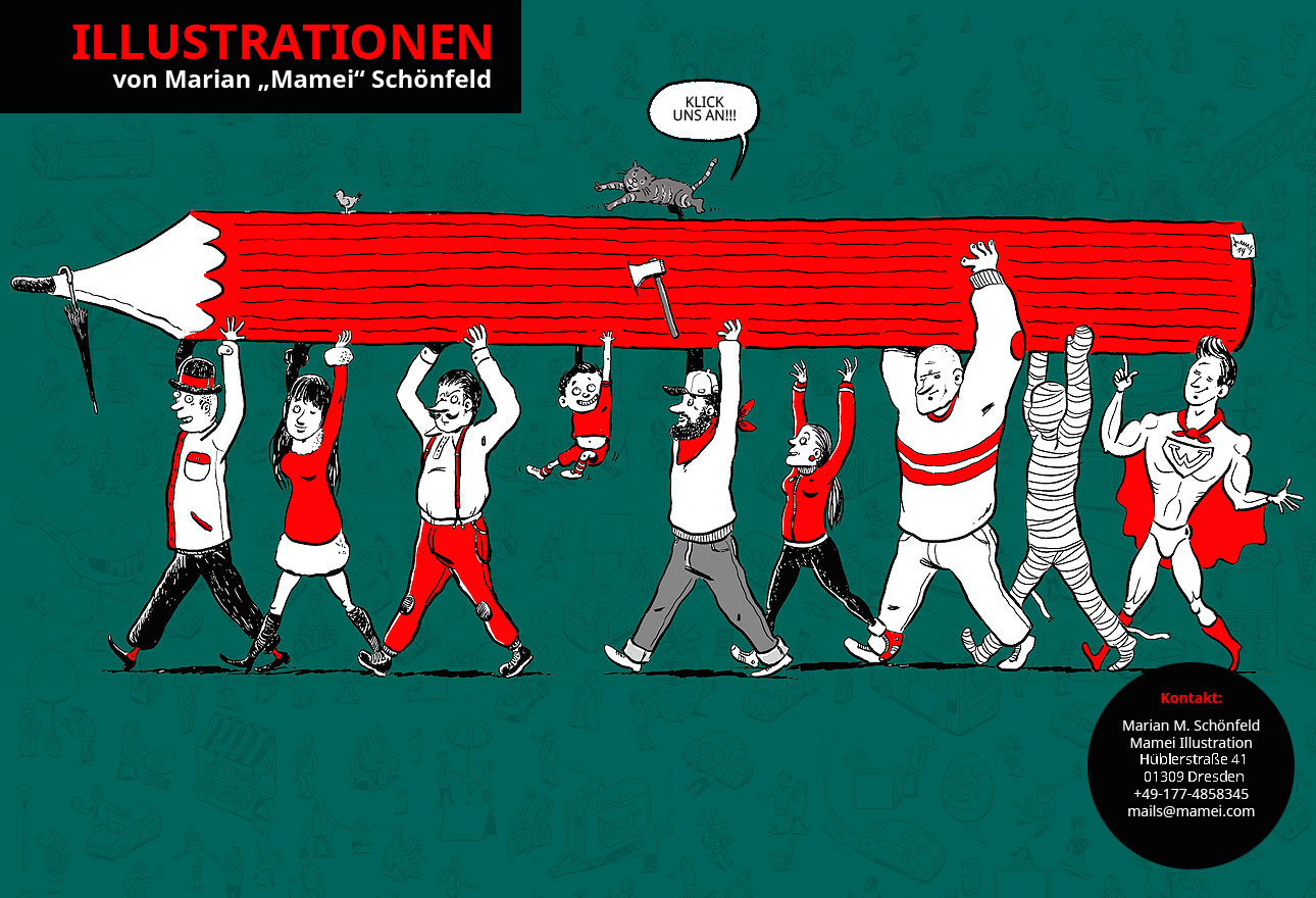 Impressum | Booking | Wimmelbilder | Dave Grigger | Mitglied der Illustratoren Organisation | VG-Bildkunst-Urheber-Nr: 1725869 | © 2007-2016 Marian Meinhardt-Schönfeld, alias Mamei